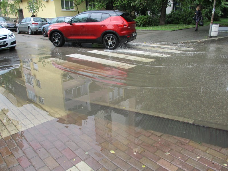 Русе, централната улица "Александровска" след лек непродължителен майски дъжд.