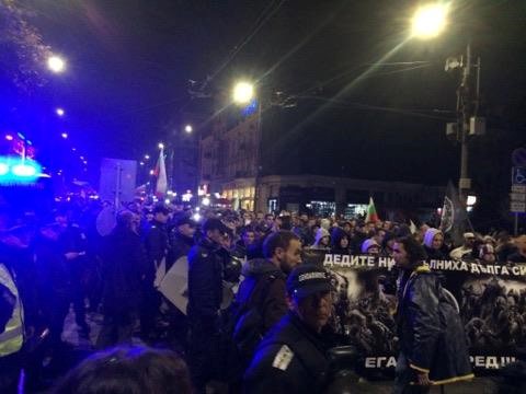 Напрежението в центъра на София, където в момента националистите провеждат протест срещу миграните започна да ескалира, предаде ПИК.