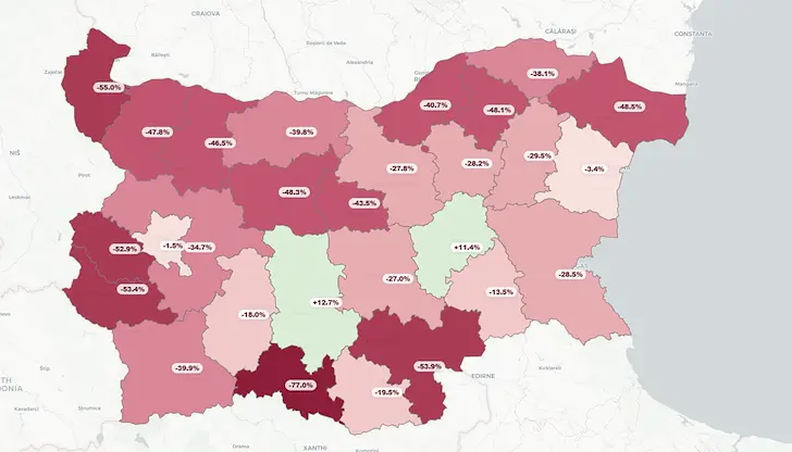 В Сливен се прогнозира увеличение от 11,4 процента, но там основен двигател на процеса е традиционно високата раждаемост. Столицата София ще запази относителна стабилност с минимален спад от едва 1,5 процента до края на прогнозния период.