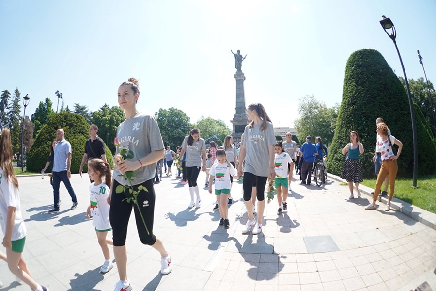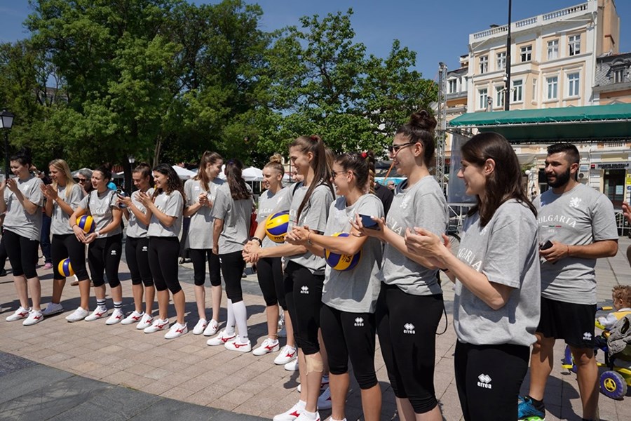 Те се срещнаха с десетки граждани пред Паметника на свободата в центъра на града и се снимаха заедно с тях. Заместник-кметът по устройство на територията инж. Димитър Наков пожела успех на българските момичета в предстоящите мачове от Волейболната лига на нациите от името на кмета Пламен Стоилов и им подари цветя.