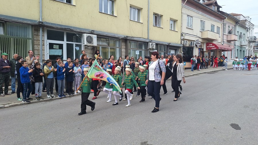 Патриотичното събитие бе последвано от преглед на строевата и маршова песен, в който участваха представители на 20 училища и детски градини