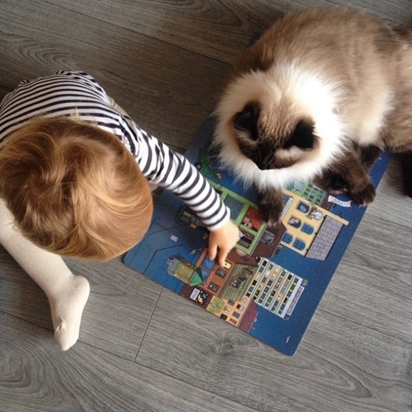 Като цяло котките обичат да прекарват времето си с деца и да играят заедно с тях на разнообразни игри.