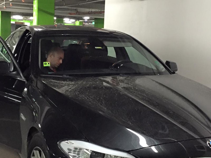 Около 16 часа в паркинга на Мол Парадайс, на ниво-2, посока изхода отдясно ме удари кола, която при знак само надясно и маркировка само надясно за него решава да мине напряко и се забива в предната дясна част на колата ми.