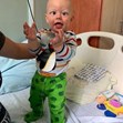 Играехме си и докато скачаше в ръцете ми си удари главичката. Поплака малко, но отново се разигра и аз се успокоих. След няколко часа обаче, забелязах подутина на слепоочието му. Веднага го заведох на преглед и му направиха рентгенова снимка. Лекарите казаха, че няма нищо обезпокоително. На следващата сутрин се събуди със силен плач и забелязах, че не си отваря очичките.