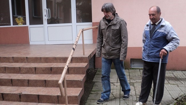 Асен Канджев и бащата на Деян - Ивайло Апостолов, пред дневния център за деца с увреждания в Благоевград