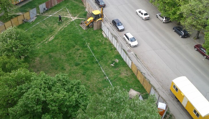 Започна строежът на поредния търговски център, разположен на територията на последната зелена площ в квартал Родина - междублоковото пространство между Брацигово и Клисура.