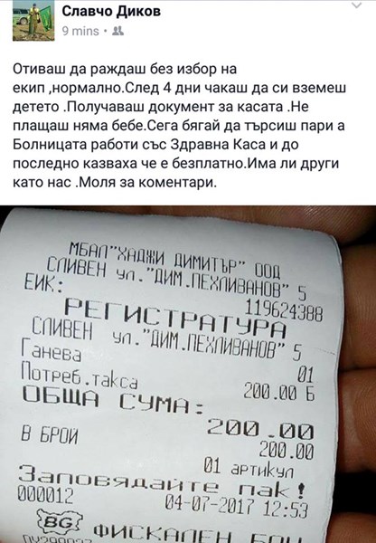 Получаваш документ за касата. Не плащаш - няма бебе. Сега бягай да търсиш пари, а болницата работи със Здравна каса и до последно казваха, че е безплатно.