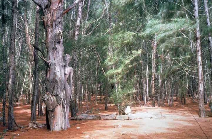 Хора, заснети на фона на красива природа, се сливат с пейзажа, защото телата им са умело оцветени в натурални цветове