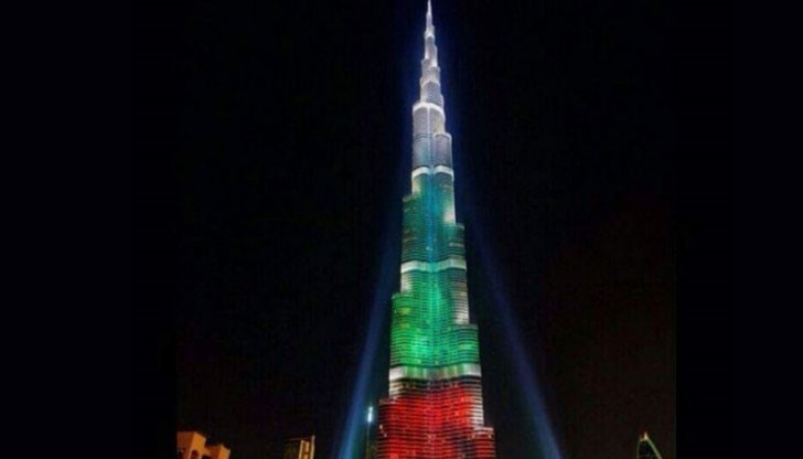 Най-високата сграда в света – небостъргачът Бурж Халифа - бе осветен в цветовете на националния трибагреник на България. Практиката за осветяването на изумително високата сграда не е нещо необичайно за Обединените Арабски емирства, съобщава sociopower.net.