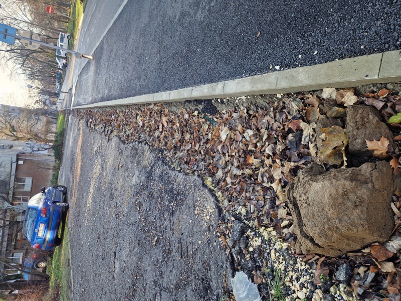 До бордюра е оставен голям трап (на места ивица от кал), който пречи на живущите в района да стигнат до входа на блока си, както и на колите да паркират на паркинга зад блока. Такъв пример е паркинга между блоковете "Тракия" и "Мизия".