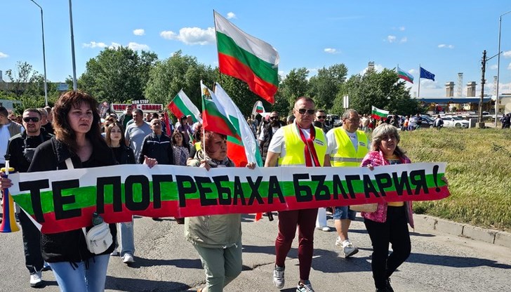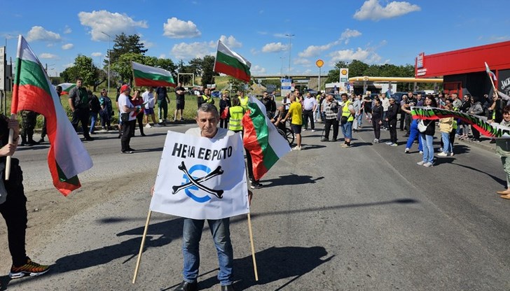Група от около 25 души блокира днес подхода към Дунав мост при Русе, протестирайки срещу въвеждането на еврото в България. Участниците развяха трибагреници, изпълниха патриотични песни и настояха за оставка на правителството.
