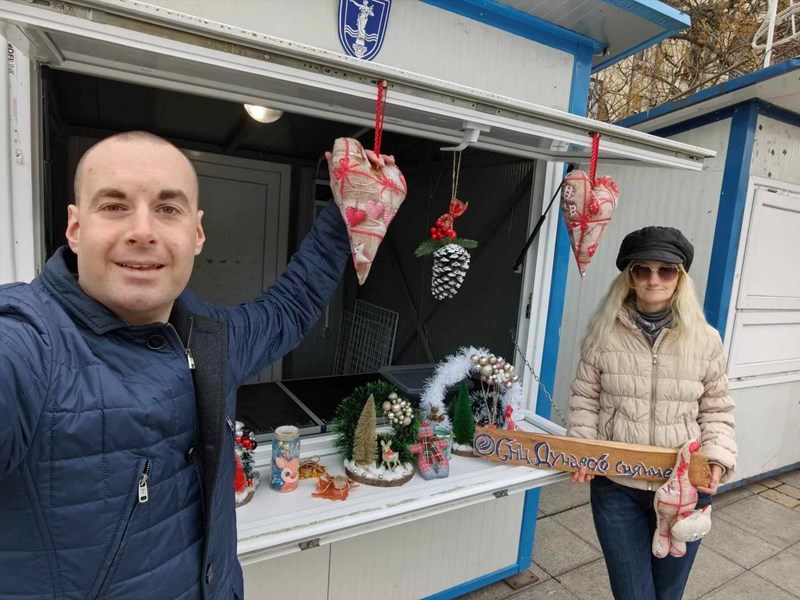 За създаване на подобаващото коледно настроение сериозна подкрепа получиха от креативните майки на Сдружение „Родители на деца и възрастни с аутизъм“, които изработиха уникални коледни изненади - шишаркови и жълъдови късметчета, даряващи усмивка на притежателите им, както и от майстор на крафт картички Ани Илиева от Дом за стари хора „Възраждане“.
