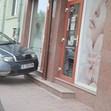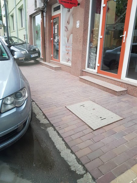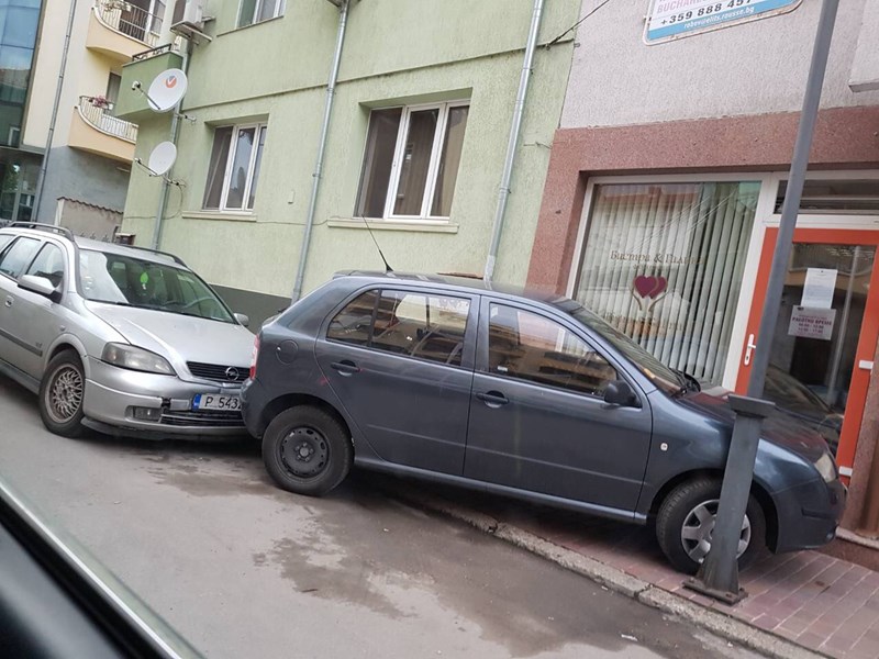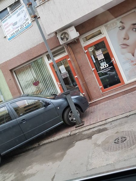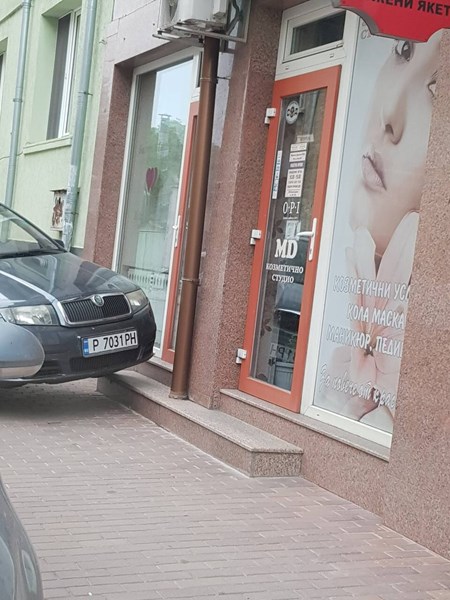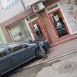 От кадрите се вижда, че един автомобил се е "загнездил" между витрината на офис на "Бистра и Галина" и уличен стълб.
