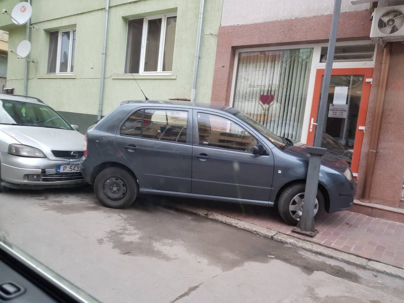 Все още нямаме официална информация за точните причини за пътния инцидент, но най-вероятно автомобил "Опел" с русенска регистрация е "подпрял" автомобилът пред него и така Шкодата се е озовала в тази абсурдна ситуация.