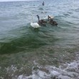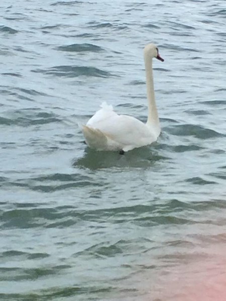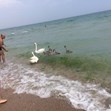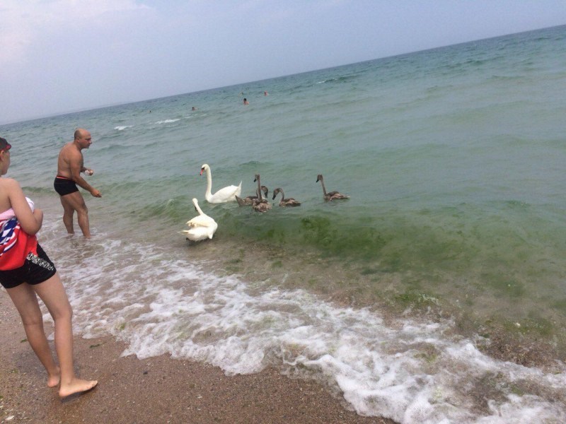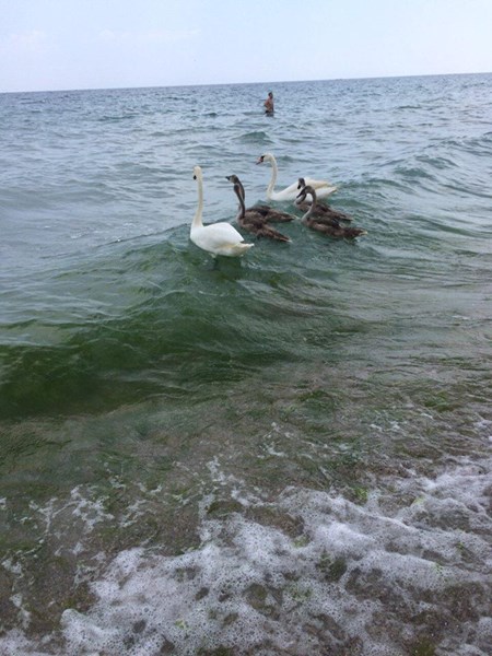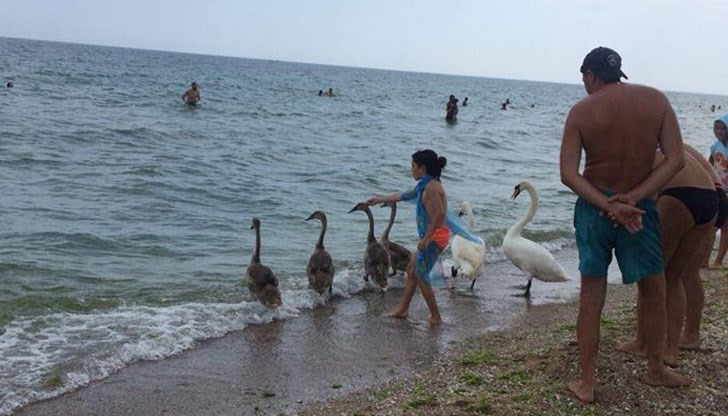 Според очевидци те поплували заеднос плажуващите, а след това се отдалечили навътре в морето. В района има няколко колонии лебеди, които гнездят в района на Дуранкулашкото езеро и в Шабленските езера, информира Traffic News.