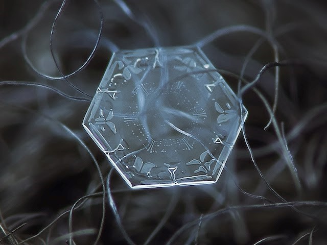 „Заснел съм снежинките през прозореца на дома ми, на стъклена повърхност с флоресцентна светлина под самото стъкло. Някои от тях са заснети и на дневна светлина върху различни памучни материи“, казва фотографът.