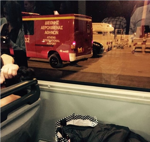 На мястото са пристигнали пожарни и полиция. Самолетът все още не е излетял от Атина.