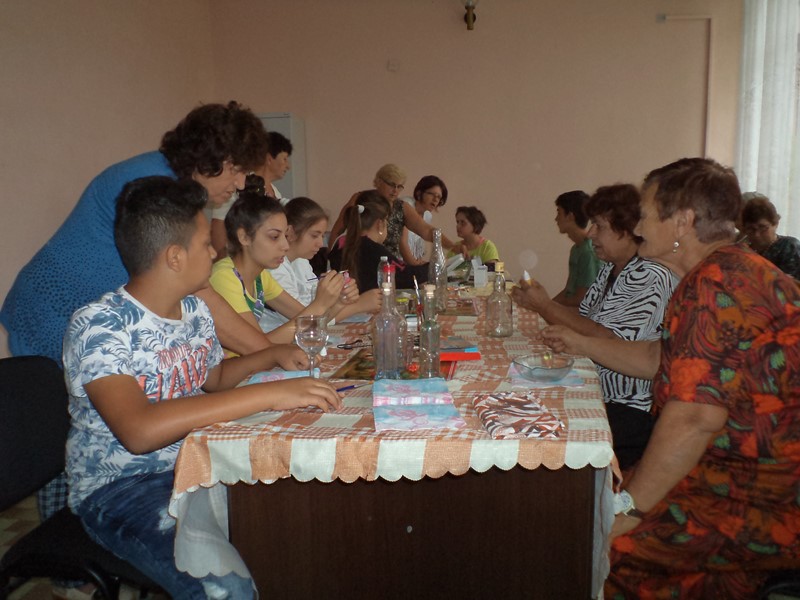 Идеята е децата да усвоят уменията и опита на по-възрастните хора. Първият урок беше разделен в три части – изработване на гривни и гердани, шиене на карета върху ленена панама и рисуване върху стъклена повърхност.