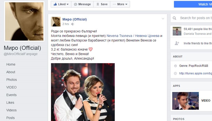 За щастливото събитие написа в социалните мрежи и певеца Миро.