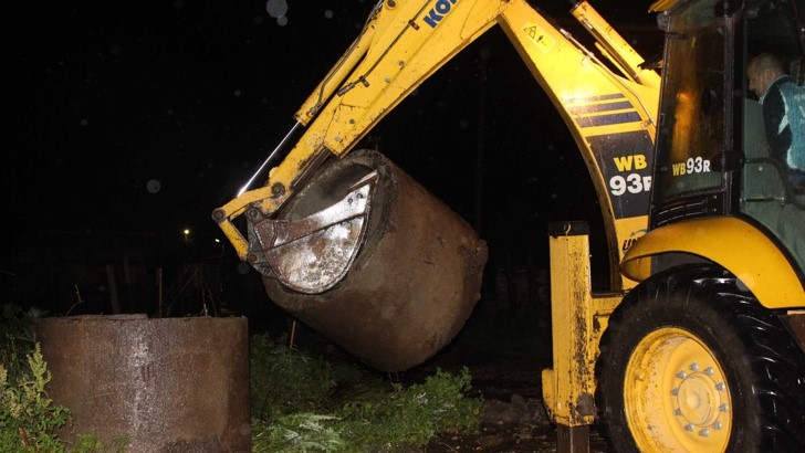 На мястото има струпана много строителна техника, която извозва строителни материали, с които се издига насипна дига, за да се спре разлива.