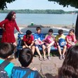 Поредното лятно занятие започна с разходка по кея, по време на която имаше кратка беседа за биологичното разнообразие, за заплахите от замърсяването на околната среда и програмите за следене на чистотата на водите на една от най-големите и най-дълги реки в света. Тези и други любопитни факти разказа Рени Петрова от РИОСВ - Русе, която беше домакин и водач на малките приятели на река Дунав.