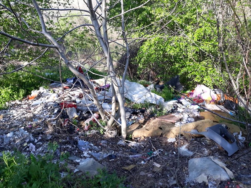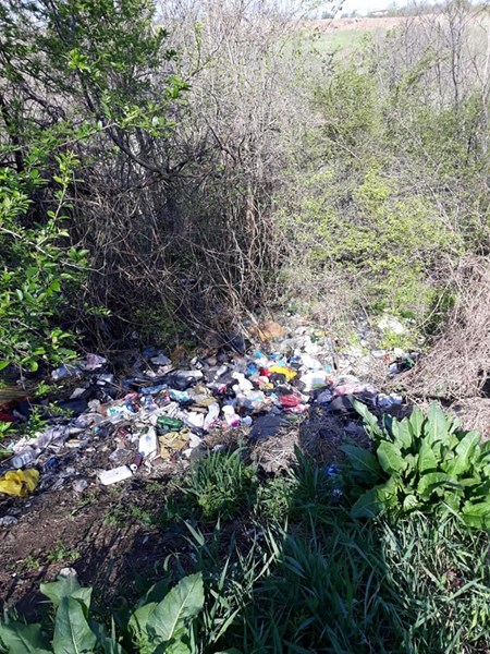 "Вижте на каква мръсотия се натъкнах преди 2 дена. Мястото е по пътя за Касева чешма, зад транжорната на Николови. Предполагаемият източник на замърсяване е къщата която съм снимала, направили са там едно гнусно сметище!