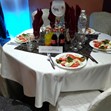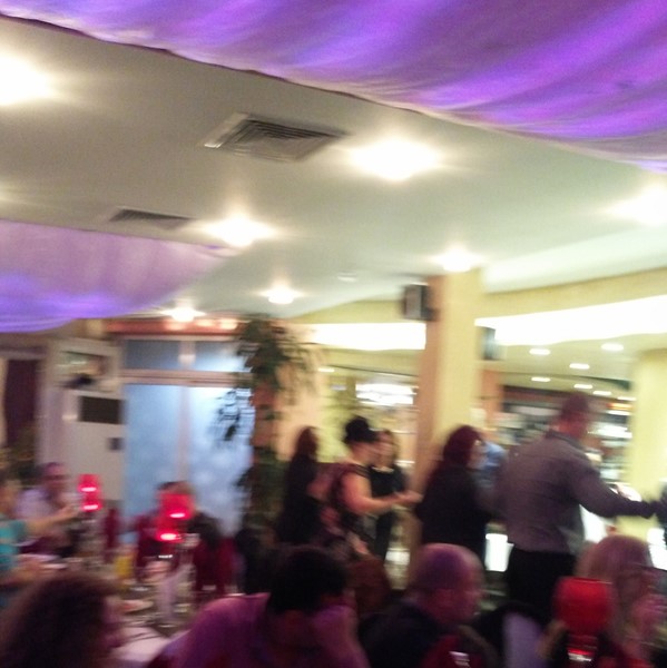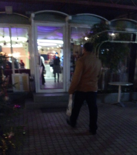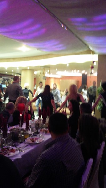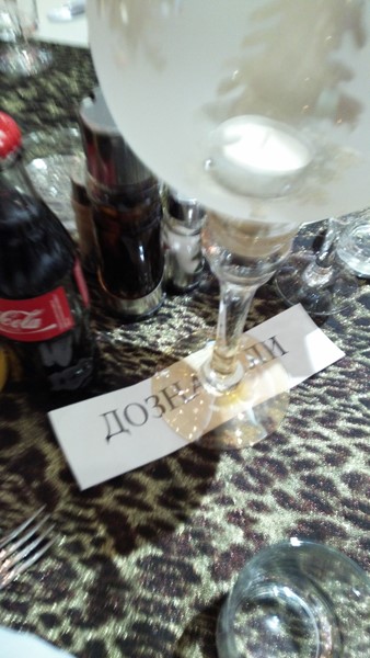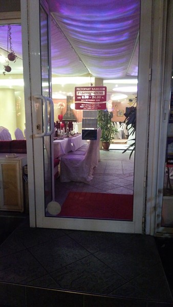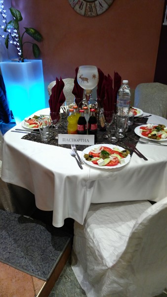 Масите са подредени, украсени, надиплени като за провинциална сватба. Току до дансинга виждаме свободна маса, незаредена за банкета. Посреща ни любезна салонна управителка на ресторанта, която след като разбира, че искаме маса за четири човека, ни настанява на въпросната маса. Едва повярвали на късмета си, и почти седнали, към нас се насочва свила ядно устни отрудена женичка, която се представя, че е управител на заведението. И на кресчендо нервно заобяснява, че имало „частно парти“, и че тази маса била „резерв“, ако някой „друг“ дойдел, като че ли се чакаше Сотир Цацаров, предвид леопардовата дамаска на дивана на т.нар. свободна маса, където само преди минути ни бе настанила салонната управителка.