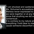 Шуман обаче твърди, че се е опитала да спре авансите му. "Казах му, че съм девствена и че не искам секс", разказа тя.