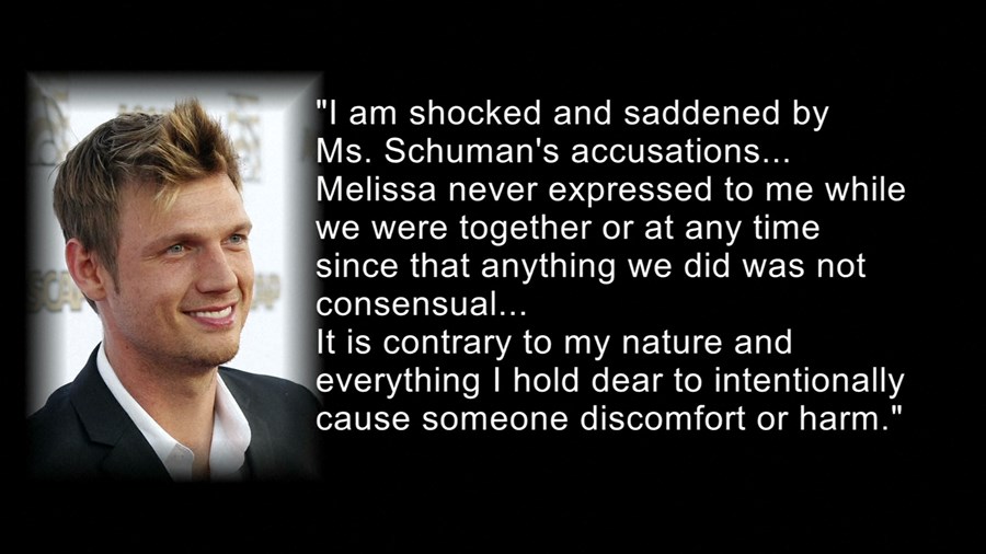 "Мелиса никога не ми е казвала, че сме правили нещо без нейното съгласие" - допълни Ник Картър в изявлението си. - "Това не е в характера ми. Не бих причинил никому дискомфорт или зло".