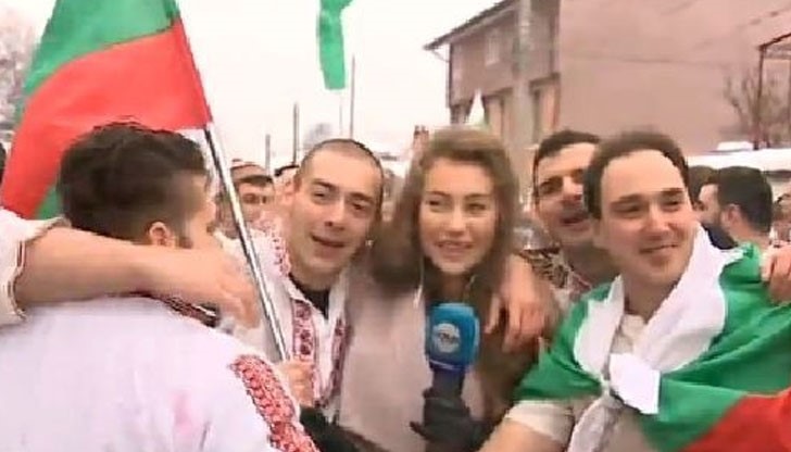 При едно от преките си включвания на живо синоптичката беше заобиколена от няколко подпийнали мъже, които се подготвяха да влязат в ледените води на Тунджа за традиционното хоро.