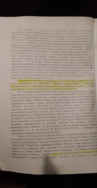 МВР за пореден път използваха схема срещу мен за натиск. На27.04.20г. със Заповед РД-01-239/26.04.20г. на МЗ се допуснаха посещенията в паркове и градски градини по време извънредното положение в страната и вече не бяхме без клиенти в парка, а започнаха да работят обекти с клиенти. В Русе аз започнах да возя с влакчето деца и техните близки съгласно Заповед РД-01-124/13.03.20г. и РД-01-139/19.03.20г. на МЗ, като спазвах семейните клиенти да са в различни купета на повече от 1м. разстояние.