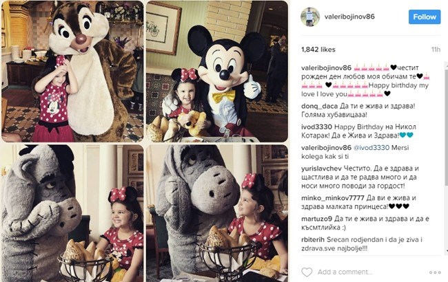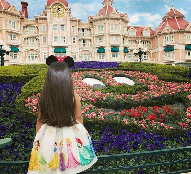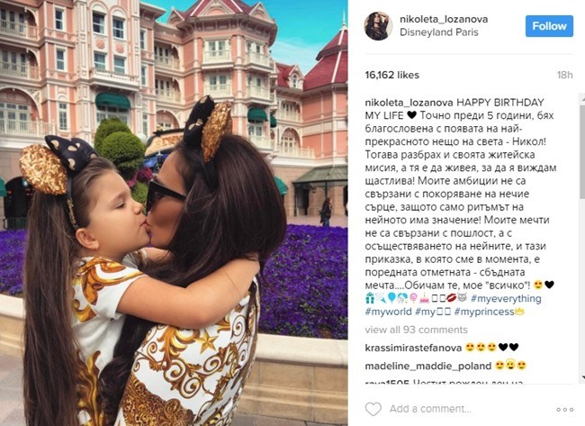 На снимката Никол сияе от радост, облечена с рокля с принцесите на Дисни, до огромна торта на три етажа. На друг кадър Никол е пред хотела "Диснилед" сред приказно красива градина.