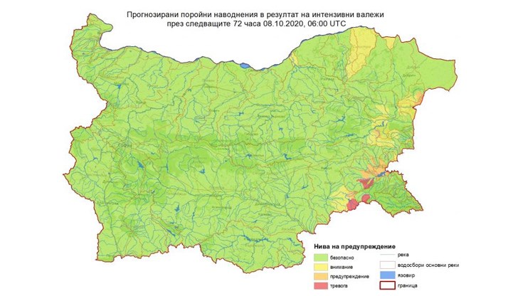 Предупреждението е за водосборите на: р. Тунджа (р. Поповска, р. Ахлатлийска, р. Кушудере, р. Балаклия, р. Араплийска, р. Боялъшка) и р. Арда (р. Елховска)