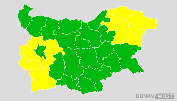 Националният институт по метеорология и хидрология (НИМХ) обяви предупредителен жълт код за условия за образуване на слани утре, 28 април, съобщават от института. Мярката обхваща общо десет области в Североизточна и Югозападна България.