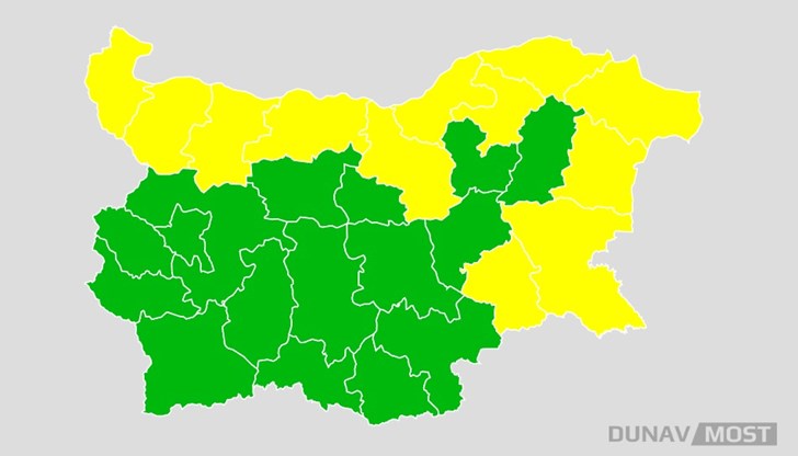 Националният институт по метеорология и хидрология (НИМХ) обяви жълт код за силен вятър в 12 области на България за 25 септември. Предупреждението е издадено за областите Видин, Враца, Монтана, Плевен, Велико Търново, Русе, Разград, Силистра, Добрич, Варна, Бургас и Ямбол.