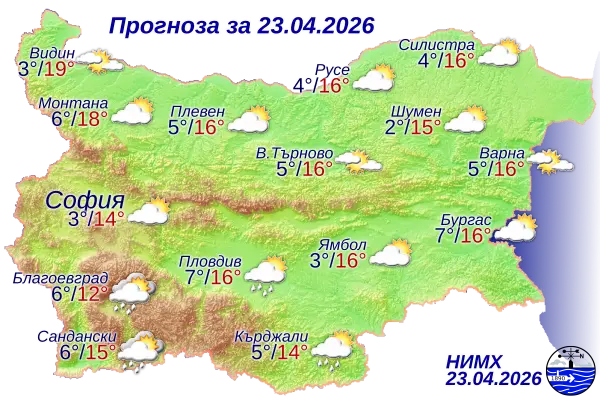 През днешния ден облачността ще бъде променлива, като в следобедните часове ще намалява до предимно слънчево време. В Югозападна България ще се задържи облачно с валежи от дъжд, които се очаква да спрат до вечерта.