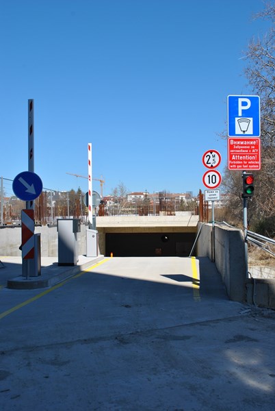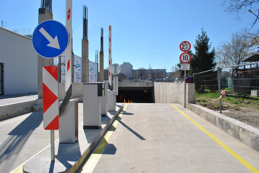 Към настоящия момент е завършено ниво -1, както и сервизните помещения и инсталации, разположени на останалите подземни нива, които са необходими за функционирането му. Влизането и излизането на моторни превозни средства до паркинга ще се управлява от паркинг система, която работи с баркод билети за еднократно паркиране.