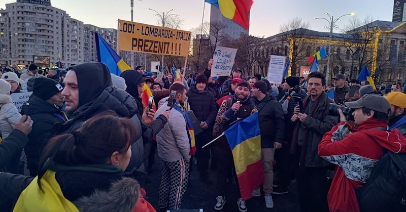 В демонстрацията участват и румънски граждани от диаспората, пристигнали специално от Ломбардия, Италия. "Не съм тук заради Калин Джорджеску. Тук съм заради правото на свободни избори", сподели един от протестиращите, предаде БТА.