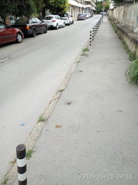 Вандали са изтръгнали ограничителните колчета на улица "Богдан войвода" в района на училище "Отец Паисий" в Русе.