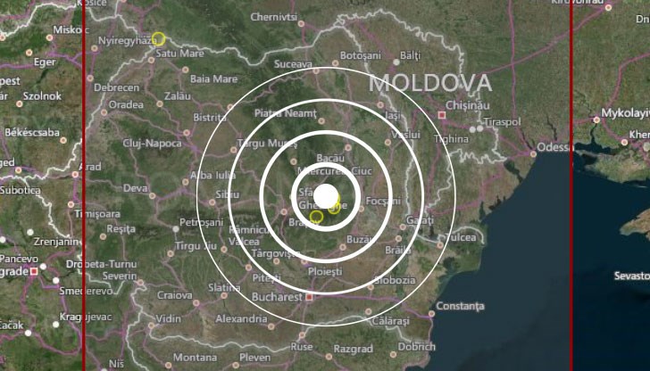Еепицентърът на земетресението е на 164 км северно от столицата на Румъния - Букурещ.
