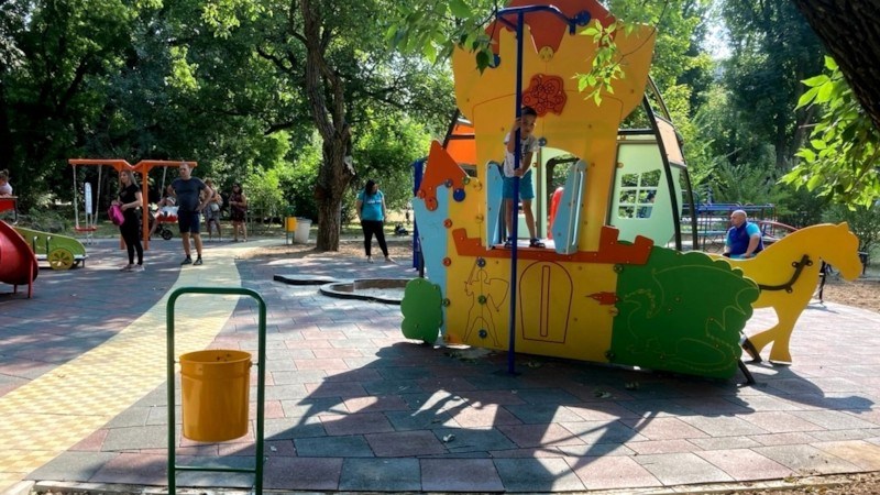 Премахнати бяха старите съоръжения, неотговарящи на изискванията за безопасна игра, и на тяхно място са разположени уреди, съобразени с Българския държавен стандарт. Положени са градински бордюри и настилка от тротоарни плочи, която е и ударопоглъщаща, а всички използвани строителни материали и изделия са от негорими продукти. Новите съоръжения - кон с каляска, ретро кола, пързалка, двойна люлка и пясъчник във формата на ябълка, са много атрактивни и това прави площадката една от най-посещаваните в Парка на младежта.
