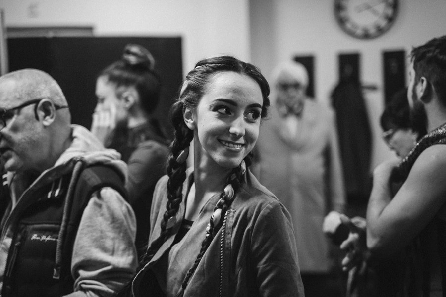 „В ДТ „Сава Огнянов“ влязох с кастинг. Ама и това е много смешна история. По него време имах адски болки и проблеми с корема и много пиех болкоуспокояващи. Ходех си леко изгърбена и в едно леко „особено настроение“ отивам на кастинга. Преди това два дни ядях само солети. Хем превъзбудена от аулина, хем незнаейки какво се случва се сблъсквам с директора. Задачата ми беше да си кажа монолога все едно съм на детска площадка и деца се катерят навсякъде и аз ходя по тях сякаш ги пазя. И директорът се задави точно в тоя момент, почна да кашля. И аз най-спокойно отидох и му предложих вода. Той ме погледна с най-големите си очи в стил „Как така идваш при нас?“. Аз пък го вкарвам в задачата и монолога, все едно е дете и аз отивам да му помогна.