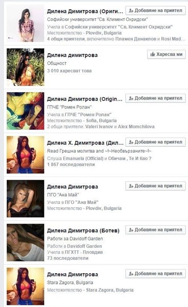 Проверка в социалната мрежа показа , че въпросната Дилена има цели 22 профила във Фейсбук с хиляди приятели и последователи.