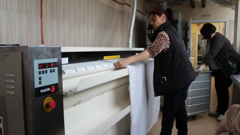 В помещенията ѝ бяха извършени редица подобрения, като строително-монтажните работи включват нова фаянсова облицовка и шпакловка по стените, нови врати и преградни стени, нова подова настилка, както и подмяната на всички инсталации. Помещенията са оборудвани с 2 перални машини от най-висок клас, като едната е от бариерен тип, 2 сушилни и 1 каландър за гладене, както и професионална ютия.