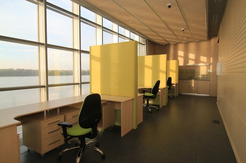 Интериорът на зала "Оператори" е съобразен със спецификата на работата – специални цветове, акустика, управление на осветление и др.