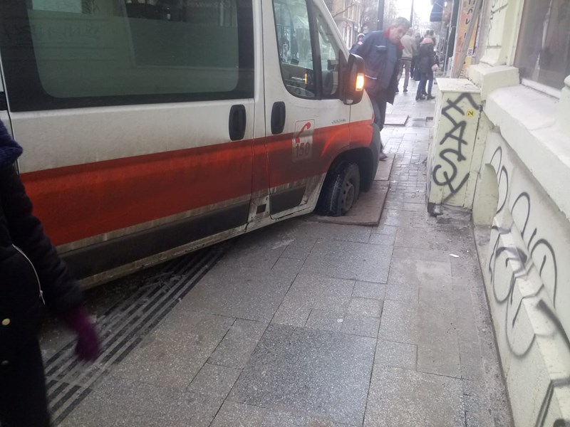 В края на януари потребител в социалните мрежи публикува снимка от пропаднала в дупка линейка на ул. "Граф Игнатиев".