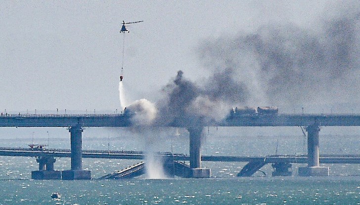 Нови взривове на Кримския мост. Руските власти съобщиха, че са свалили две ракети над Керченския проток, които най-вероятно са причинили експлозиите, съобщи NOVA.