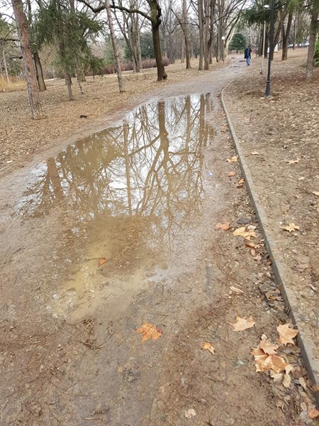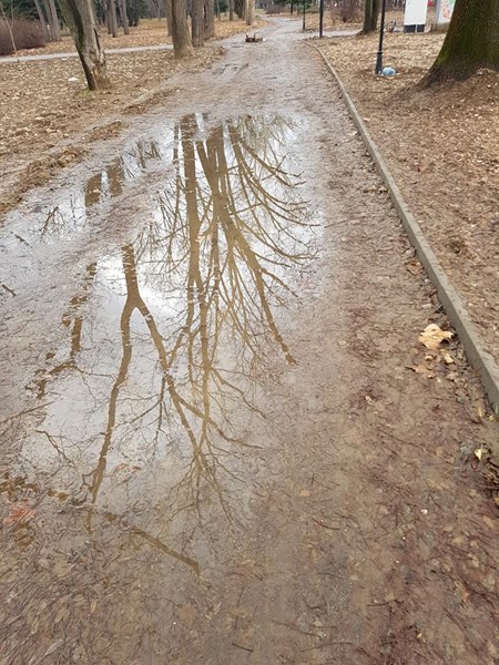 Новите алеи в Парка на младежта в Русе са потънали в локви и кал.