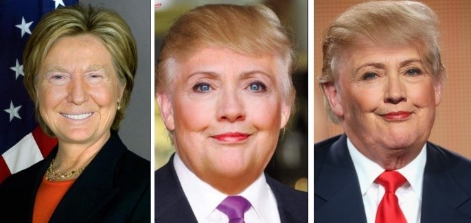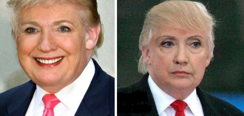 В социалните мрежи се появи майсторски колаж на Доналд Тръмп и Хилъри Клинтън като един странен човек. Reddit потребителят Dizzy_DDS сподели с интернет потребителите своята версия на Трилъри - поразителният политик.