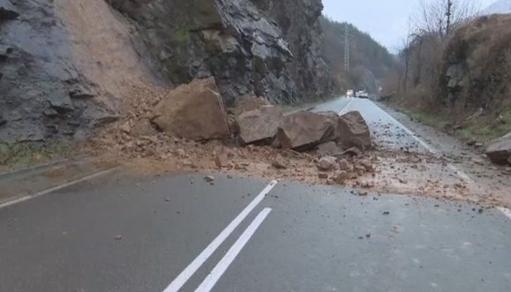 Ново свлачище в Искърското дефиле - късно снощи паднала скална маса е затворила пътя Своге - Ребърково в района на Елисейна, съобщи bTV.